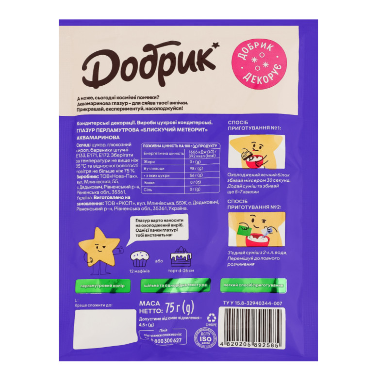 Глазур перламутрова аквамаринова Блискучий метеорит Добрик м/у 75г
