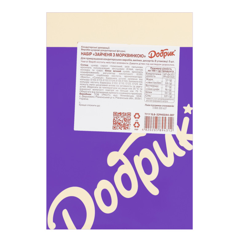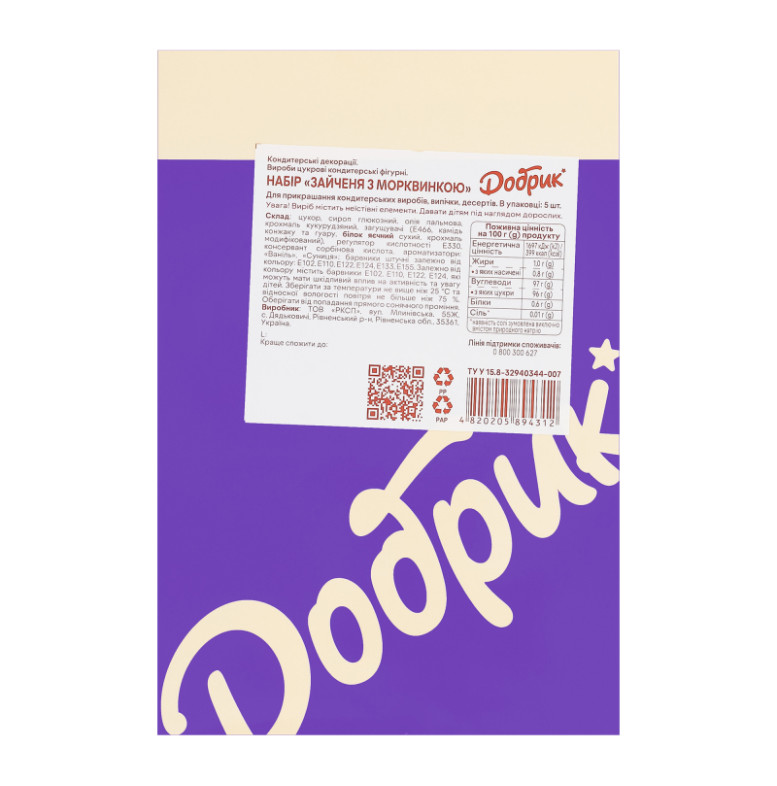 Набір кондитерських декорацій Зайченя з морквинкою Добрик к/у 1шт