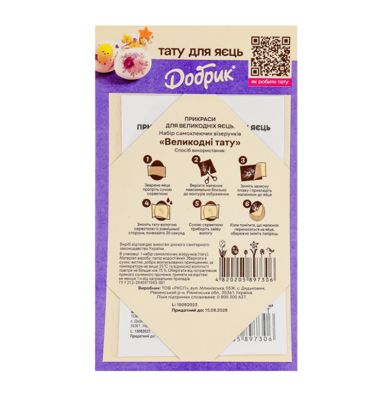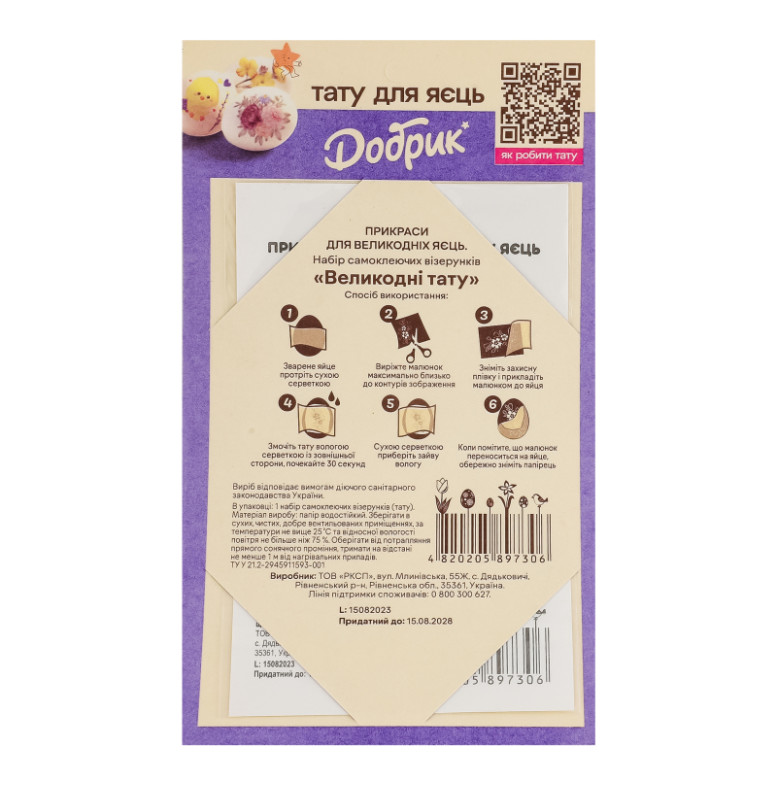 Набір візерунків самоклеючих для великодніх яєць Великодні тату Добрик 1шт