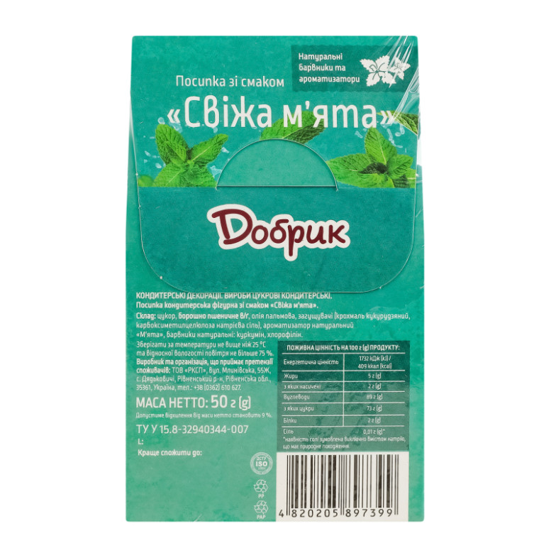 Посипка кондитерська фігурна Свіжа м'ята Добрик к/у 50г