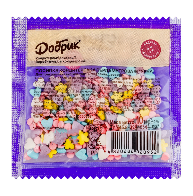 | Застереження/міри безпеки (ua) | Залежно від кольору містить барвники Е102, Е110, Е122, Е124, які можуть мати шкідливий вплив на активність та увагу дітей |