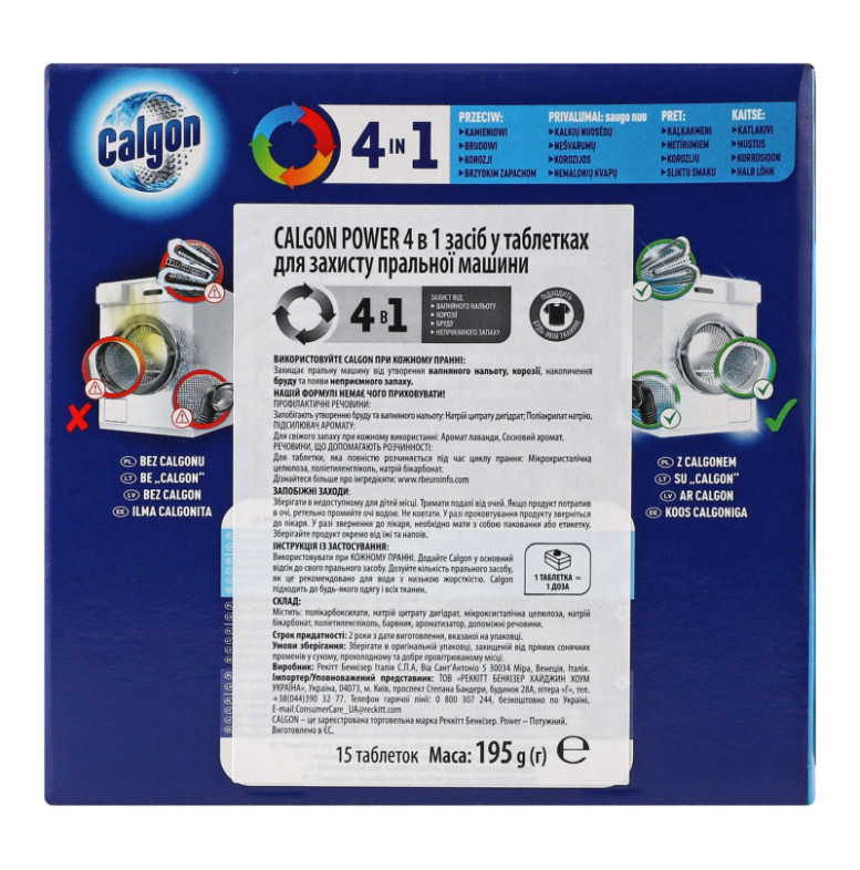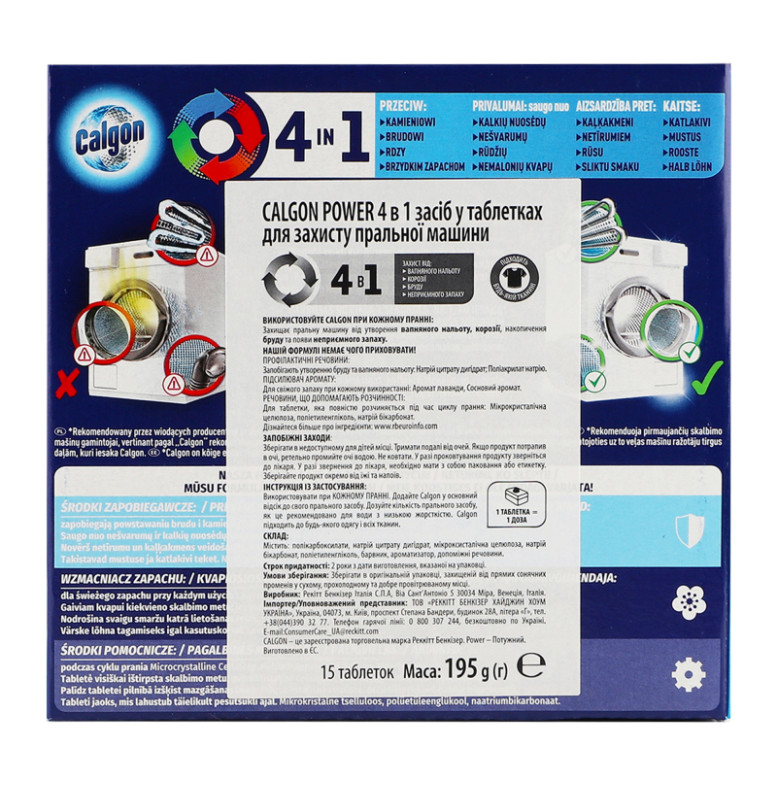 Засіб для захисту пральної машини у таблетках 4в1 Power Calgon 15шт
